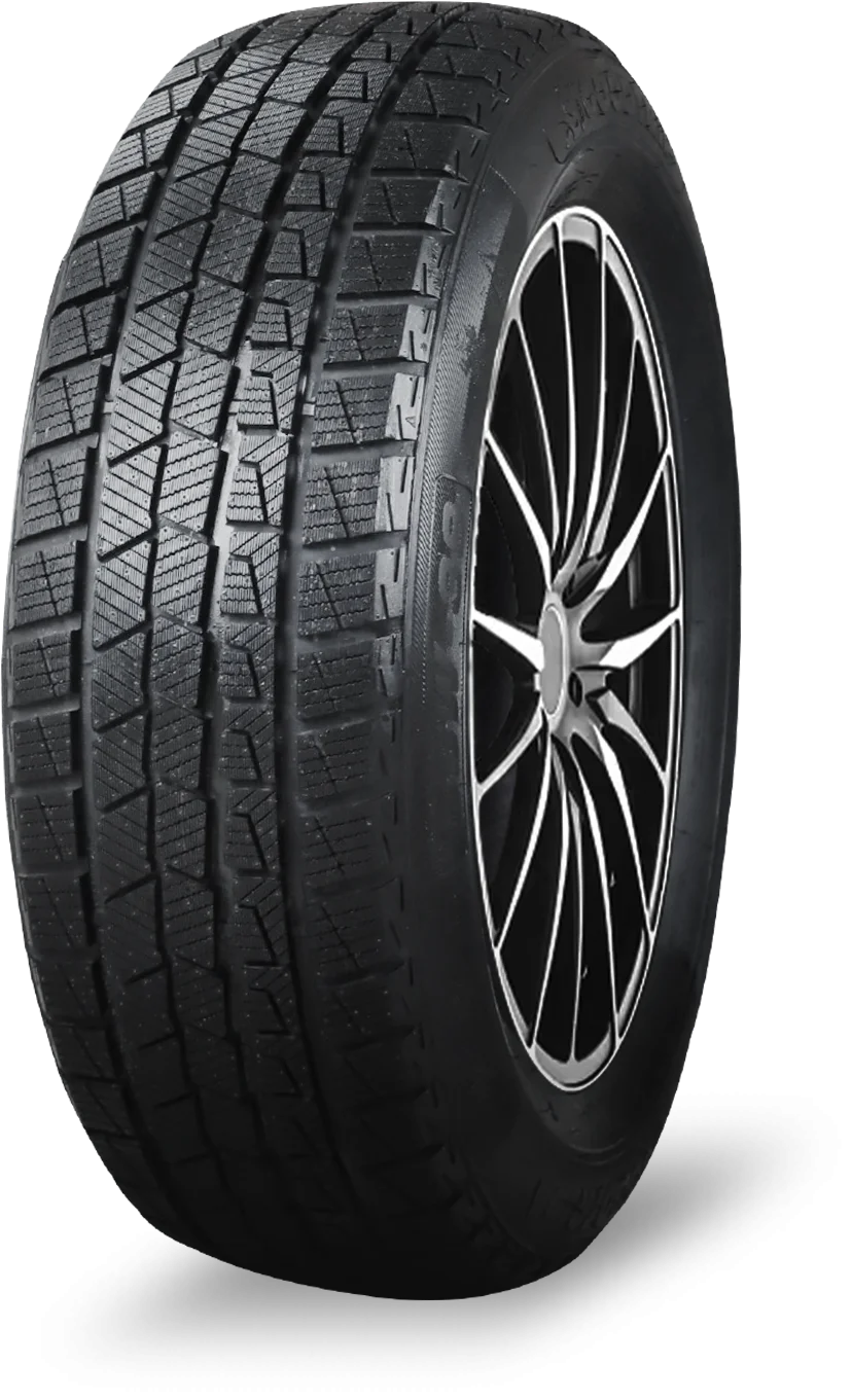 Distinctive uni-directional tread design enhances road contact for better handling. Zigzag shaped circumferential grooves create more edges around the tire to grip snow.
